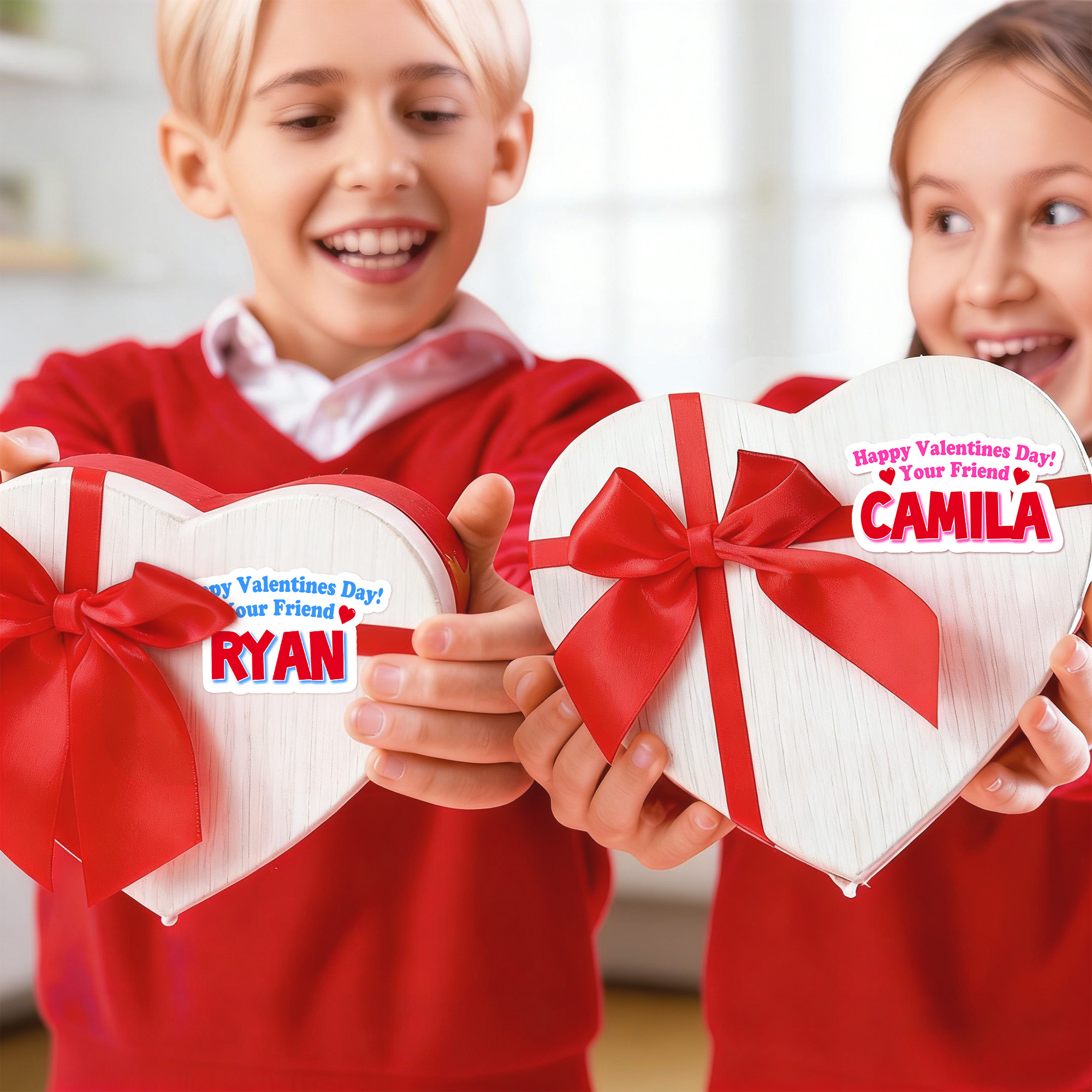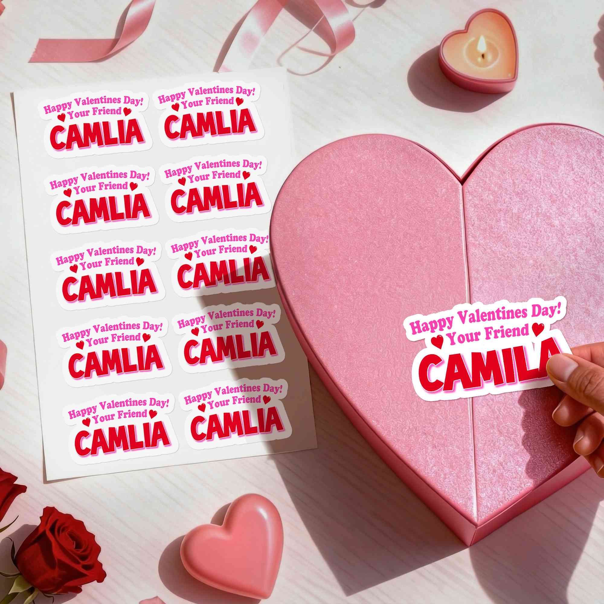 • Personalized Name Happy Valentine's Day Stickers, Gift Name Tags, Treat Bag Labels, Class Exchange Party Favors, Valentine's Day Gifts for Couple/Kids